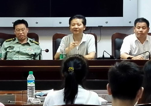 附属171医院医务处贺处长向老师和同学们介绍了附属171医院在教学、住宿、就餐、文体活动、管理等方面情况,对于学生反映的困难,贺处长表示他们已经着手解决,保证不影响同学们的学习和生活,同时也希望同学们遵守校纪校规,遵守医院的管理规定。