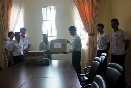 仪式上,克洛媞达理事长代表孔子学院向大岛洪森中学捐赠了两套联想台式电脑。
