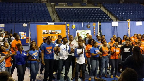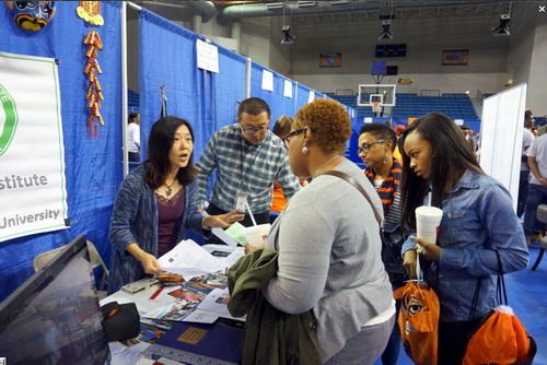 萨凡纳州立大学每年会在春、秋两季举办“校园开放日”活动,邀请全美的高中生和家长们来参观大学校园,并通过展台的方式让来参观的学生和家长与各个院系和服务部门的老师沟通交流。beat365与萨凡纳州立大学合办的孔子学院是萨凡纳州立大学重要的国际交流项目,在此次校园开放日活动中,孔子学院的展台吸引了大批的美国高中生和家长来咨询。孔子学院的几位老师通过图片、视频、PPT等多种方式详细介绍了萨凡纳州立大学孔子学院和beat365官方网站的情况,同时展示了萨凡纳州立大学孔子学院举办过的社区文化活动、汉语教学课程设置、教材、HSK考试和奖学金等项目。