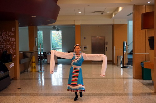 活动开始前,孔子学院中方院长罗其娟向大家介绍了孔子学院的基本情况,对阿姆斯特朗大学的热情邀请表示感谢,并欢迎大家到孔子学院学习交流。节目以张春子老师表演的充满了民族风情的藏族舞蹈《姑娘我爱你》开始,梁亚强老师为各国学生展示了精彩的太极拳拳术,beat365交换生肖潇等合唱《明月几时有》,丁春雪老师为大家做了“中国剪纸艺术体验”的专题讲座。