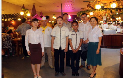 开班一个多月以来,蔡钦、何冬云两位任课教师为了让学员们快速掌握餐厅服务实用汉语,采取了各种灵活的教学方法,也得到了大剧院有关人员的积极配合。3位教师14日晚来到现场检测学员掌握所学汉语情况并进行现场教学,了解餐厅的中国客人和学员的交流情况。