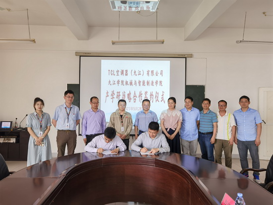 持续推进校政企合作,借助九江市“双百行动”平台,不断推进产教融合,组织教师前往华林特钢集团、艾美特电器(九江)有限公司开展产学研合作对接活动200余人次,解决企业技术难题20余项。与九江精密测试技术研究所、九江海天设备制造有限公司等企业合作共建“智能制造现代产业学院”,获批九江市重点产业学院,在人才培养模式创新、校企合作课程开发、科技攻关及项目申报方面发挥校企各自优势,不断深化产教融合。