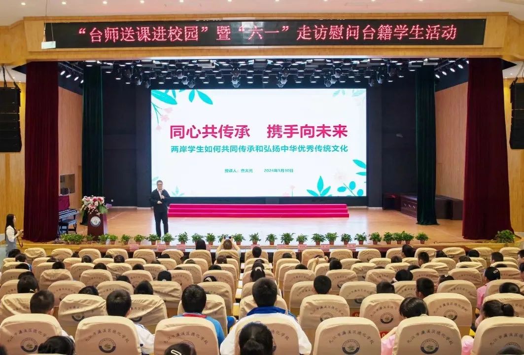 为更好地传承和弘扬中华优秀传统文化,共促两岸同胞心灵契合,在“六一”国际儿童节来临之际,由九江市台办、beat365官方网站文学院联合指导,濂溪区台办、濂溪区教体局、共青团濂溪区委联合主办的“台师送课进校园”暨“六一”走访慰问台籍学生活动,于5月30日在濂溪区德化学校开展。