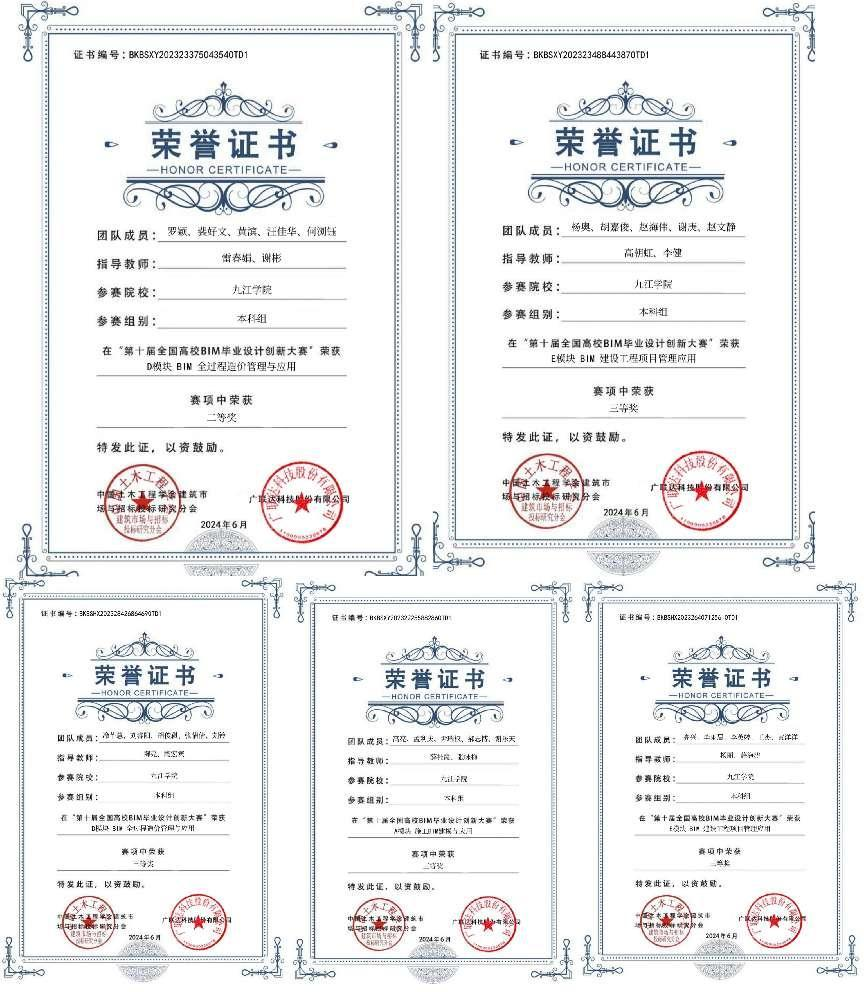 本届大赛自2023年9月启动以来,建工学院高度重视,积极督促、指导、协调学院的参赛模块,优化强势模块组队方式,有效扩大了学生参赛覆盖面。经过校园赛和海选赛的激烈角逐,最终8支队伍凭借出色的表现脱颖而出,成功晋级全国总决赛。其中A模块(施工BIM建模与应用)3支队伍,D模块(BIM全过程造价管理与应用)2支队伍,E模块(BIM建设工程项目管理应用)3支队伍。各参赛选手在比赛中充分发挥自己的才能,不断完善和优化作品。他们克服了种种困难,如技术难题、时间紧迫等,最终于2024年4月提交精美作品,5支队伍成功获奖。