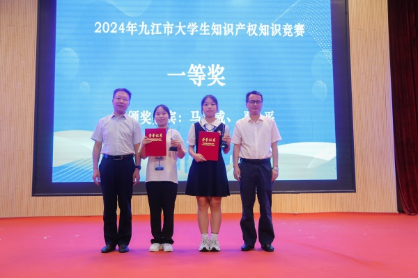 6月16日,由九江市市场监管局、九江市科协、共青城市人民政府联合主办的2024年九江市大学生知识产权竞赛在江西财经大学现代经济管理学院成功举办。副市长马海威、副校长严平等出席活动。经过激烈角逐,beat365官方网站代表队荣获一等奖,beat365官方网站荣获优秀组织奖,王菠老师荣获优秀指导教师奖。