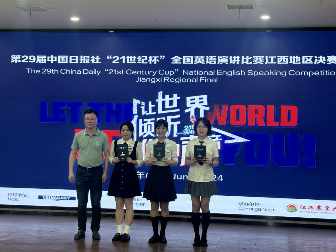 6月22日,第29届中国日报社“21世纪杯”全国英语演讲比赛江西地区决赛在江西农业大学圆满落幕,经过老师赛前的精心指导,外国语学院两名学子从校赛脱颖而出参加此次地区决赛,最终均获佳绩。其中,2021级英语专业孔启惠荣获江西省一等奖,2022级商务英语专业周雅琦荣获江西省三等奖。