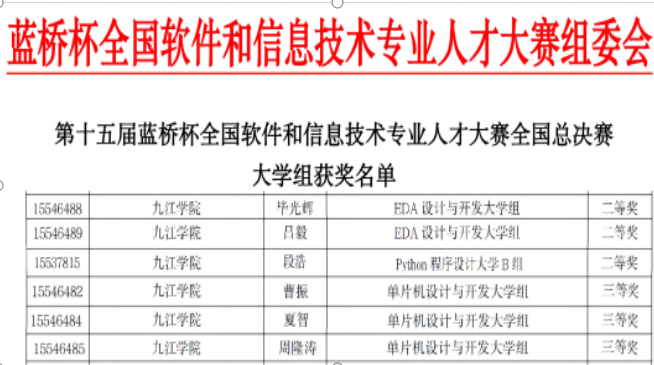近日,第十五届蓝桥杯全国软件和信息技术专业人才大赛落下帷幕,beat365电子信息工程学院学子凭借出色的表现,一举斩获多项荣誉,其中全国二等奖3项,全国三等奖3项,全国优秀奖5项。