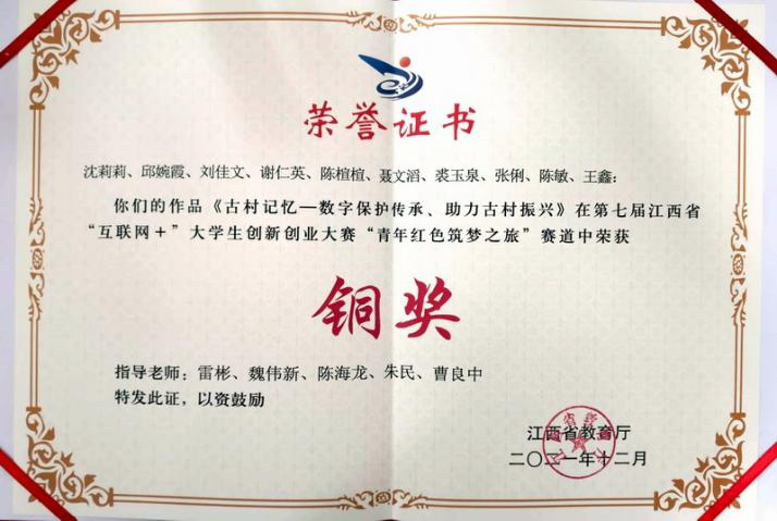 “互联网+”创新创业大赛江西省铜奖