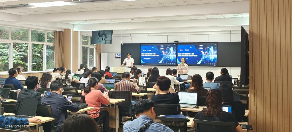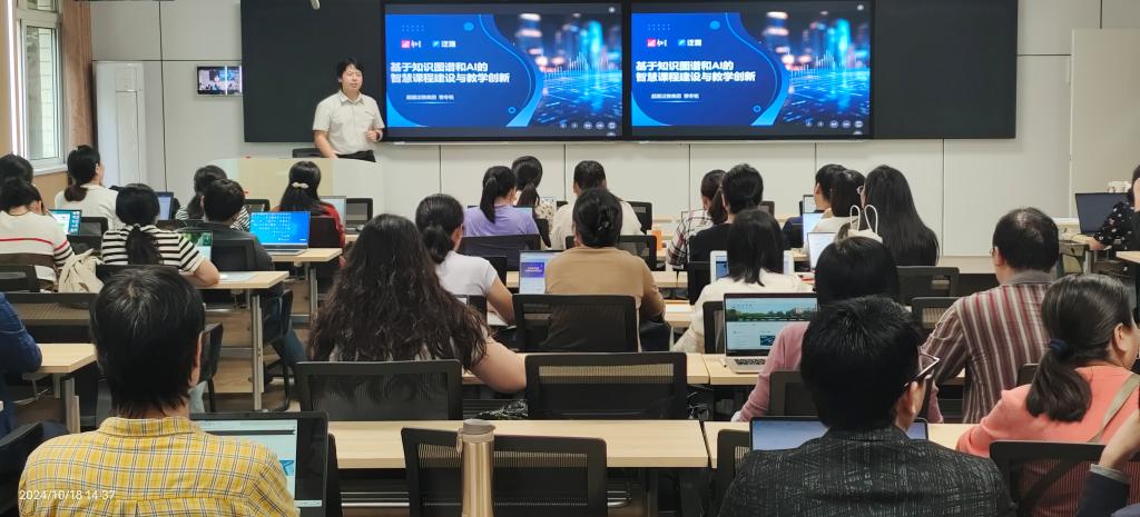 本次培训不仅聚焦于智慧教育前沿技术介绍和应用场景分析等,还增加了运用操作和交流研讨环节。培训中,参训教师就智慧课程建设中遇到的难题、对AI技术使用的疑惑,以及关于知识图谱与AI助教融合应用的想法进行讨论交流。曹冬铭老师及超星技术人员对老师们的提问进行了现场解答,提供专业指导,并与教师们共同探索了AI技术赋能教育的更多可能性。