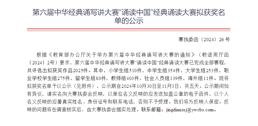 中华经典诵写讲大赛是教育部实施的公益性、全国性品牌赛事,作为“中华经典诵读工程”的重要组成部分,自2019年起每年一届,吸引了全国范围的广泛参与。