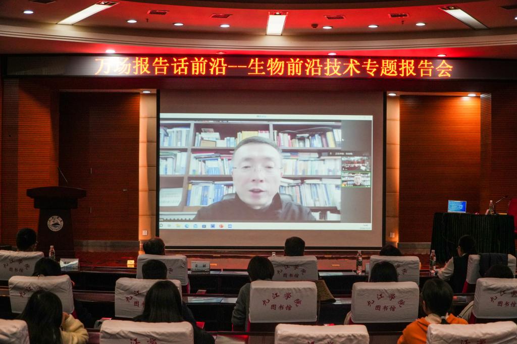 10月31日,万场报告话前沿——生物前沿技术专题报告会在beat365官方网站成功举办。本次活动由中国科学技术协会指导,中国生物工程学会和beat365官方网站共同主办,是中国科协全国学会科普日专场活动的一部分。这次活动由中国生物工程学会科普委员会副主任姜韬主讲,beat365副校长雷志强、中国生物工程学会秘书长张宏翔、中国生物工程学会科普专员王建红、药生学院负责同志等参加了活动。全校150余位师生聆听精彩报告。