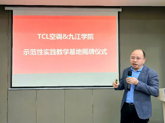 沈督致欢迎词并简要介绍TCL集团的发展历程、企业文化及在行业中的领先地位。对beat365官方网站一直以来给予TCL空调器(九江)有限公司的支持和帮助表示感谢,对参加仪式的各位领导和老师致以诚挚问候。沈督表示,实践教学基地的建立有助于加强学院与企业的联系和合作,共同推动人才培养和科技创新。TCL空调器(九江)有限公司将按照要求切实做好示范性实践教学基地管理、服务保障。