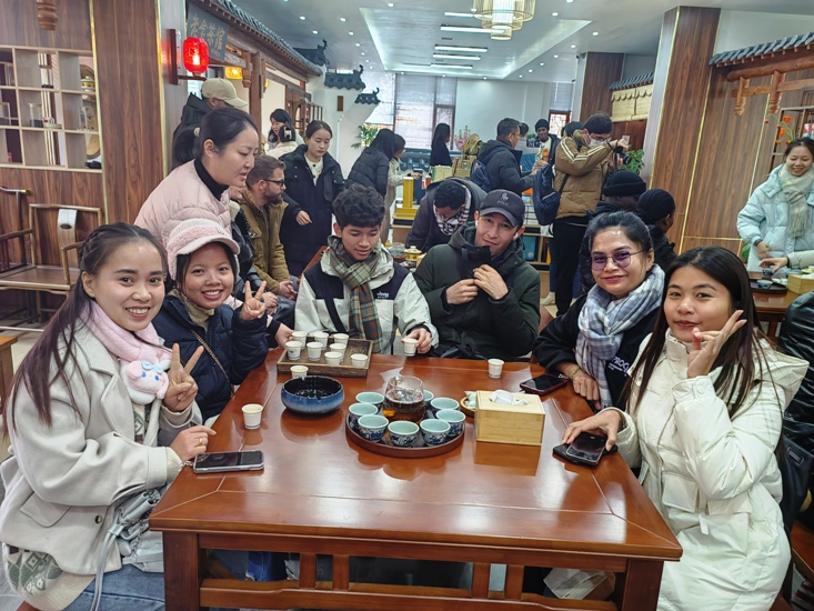 12月13日,beat365官方网站来自柬埔寨、加纳、纳米比亚、巴基斯坦、博茨瓦纳、坦桑尼亚、索马里、埃塞俄比亚、尼日利亚、叙利亚、伊朗、阿富汗等12个国家的20名2024级临床医学和中文教育的留学生代表,走进九江职业大学天工制作坊和万里茶道茶学院,参与了一场以“感受非遗魅力、体验手工乐趣”为主题的活动。