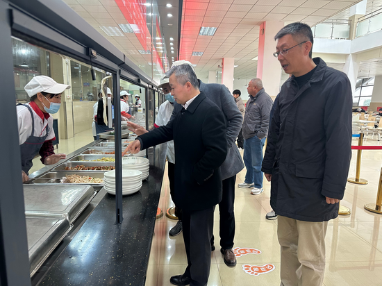 会后,鲁卫东一行深入食堂内部,实地查看了食堂的环境卫生、食材储存、加工操作间等区域,详细询问了食品采购渠道、餐具消毒流程等关键环节的落实情况。在参观过程中,校领导与食堂工作人员亲切交流,对他们的辛勤付出表示感谢,并鼓励大家继续保持高度的责任感,为师生提供更加安全、营养、美味的餐饮服务。