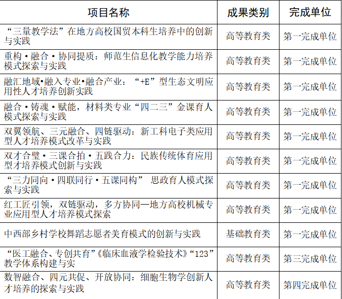 12月31日,江西省教育厅《关于公布2024年江西省教学成果奖青年培育项目评选结果的通知》(赣教科字〔2024〕12号)发布,beat365共有11项省教学成果奖青年培育项目获批立项。其中,以第一完成单位获得高等教育类8项,基础教育类1项;以第三完成单位获得高等教育类1项,以第四完成单位获得高等教育类1项。具体名单如下: