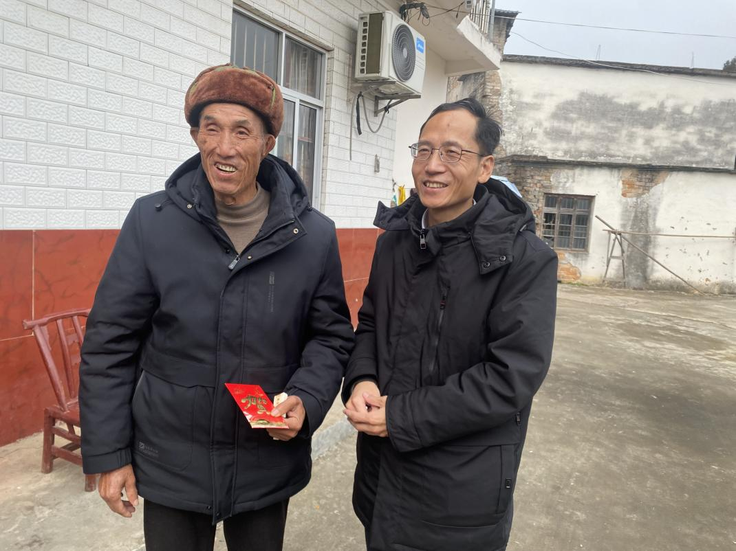 为认真落实党中央、国务院关于保障和改善民生工作的决策部署,持续巩固拓展脱贫攻坚成果,帮助城乡困难群众度过欢乐祥和的新春佳节,把党和政府的温暖送到困难群众心坎上,1月24日,副校长王殿元一行到武宁县官莲乡东山村和武宁县鲁溪镇双新村开展春节前走访慰问活动。