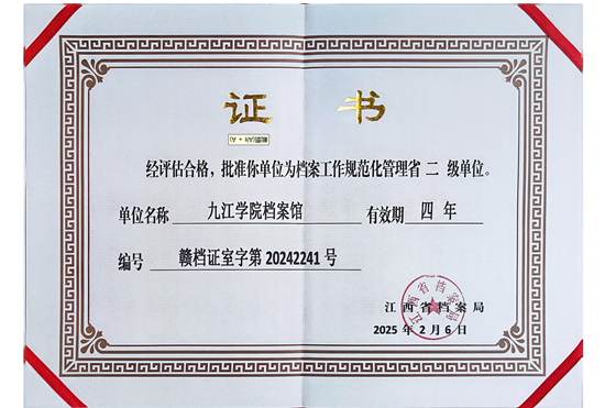 评定工作由江西省档案局牵头组织实施,设区市档案局和县(市、区)档案局协助组织实施。此次申评二级单位获得通过,不仅是对beat365官方网站档案馆过去工作的肯定,更是对未来工作的鞭策,依据文件,等级评定的有效期是4年,逾期未再申请复核或评级,将自动降一级,因此档案馆还需以此为契机,继续努力,完善现有工作体系,不断提升规范化管理水平,使beat365档案工作顺应学校高质量发展要求。