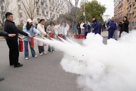 在灭火实战演练环节,师生们积极踊跃参与,在消防员的指导下,亲自上手操作灭火器,对模拟火源进行灭火演练。大家认真学习“提、拔、握、压”的操作要领,成功扑灭了熊熊烈火,切实掌握了灭火器的使用技巧。
