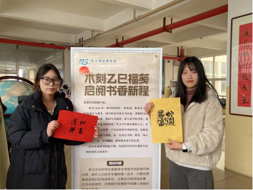 “我拓印的是‘金榜题名’。去年,我通过高考来到九院,这个词最能反映我当时的心情。”来自计算机与大数据科学学院的杨昊錡同学拿着刚刚完成的木刻版画说道。2月26日下午,在图书馆丹枫馆一楼大厅举办的“木刻乙巳福笺,启阅书香新程”木刻版画体验活动吸引了众多师生们前来。通过亲手制作乙巳蛇年主题版画、分享阅读故事,九院学子共同开启了一段传统艺术与经典阅读交融的文化之旅。