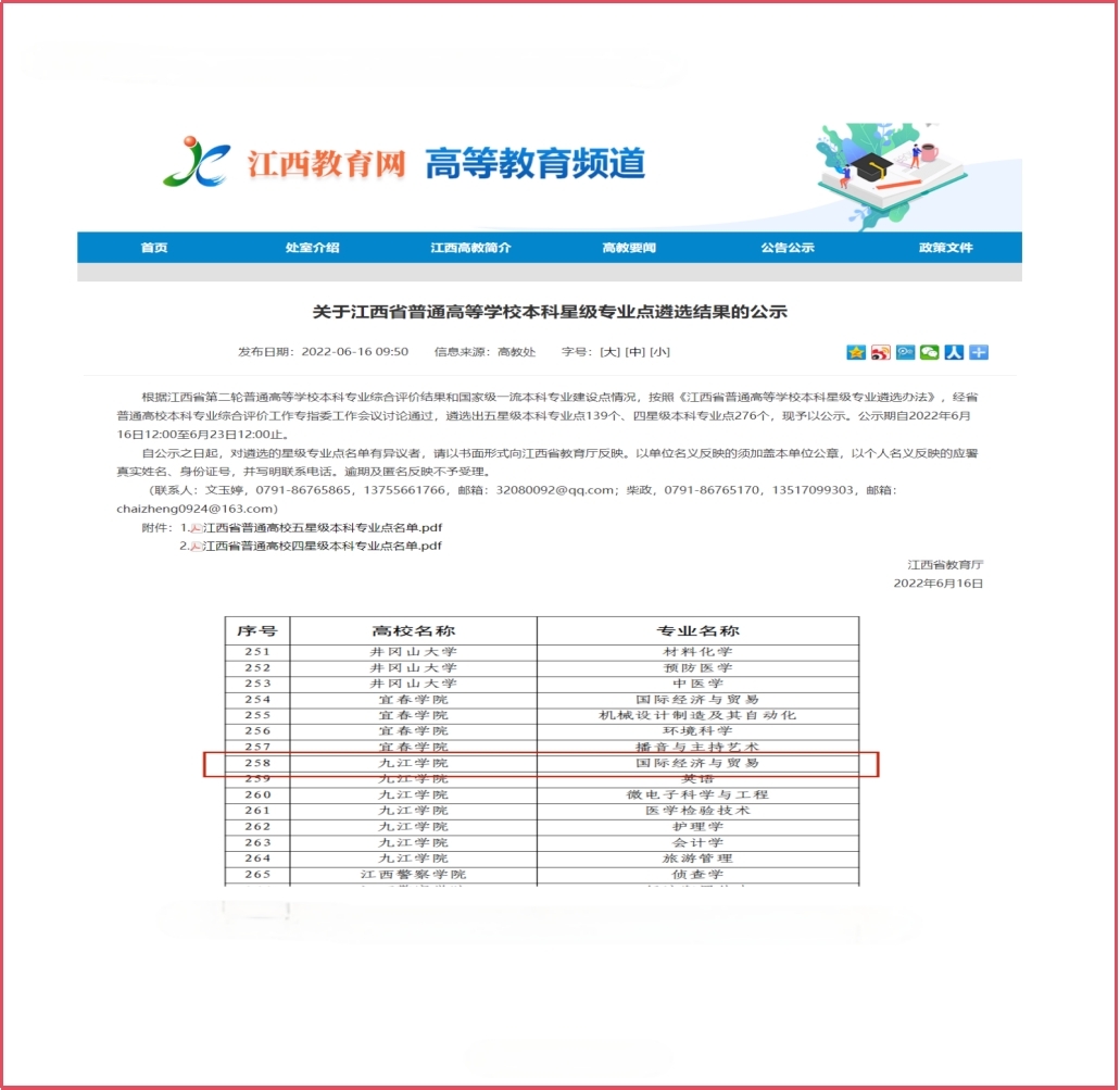 国际经济与贸易专业被认定为省级四星专业