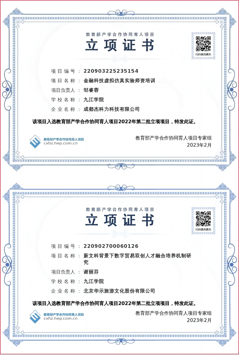 深化产教融合,拓展育人平台。学院牵头建设“数字经济产业学院”,并成功获批2023年市级重点现代产业学院立项。与九江10余家政府部门和企业共建实践教学基地,先后获批教育部产学合作协同育人项目6项,打造“校企双主体、双师同堂”新型课堂,切实提升学生的专业能力与实践应用水平。