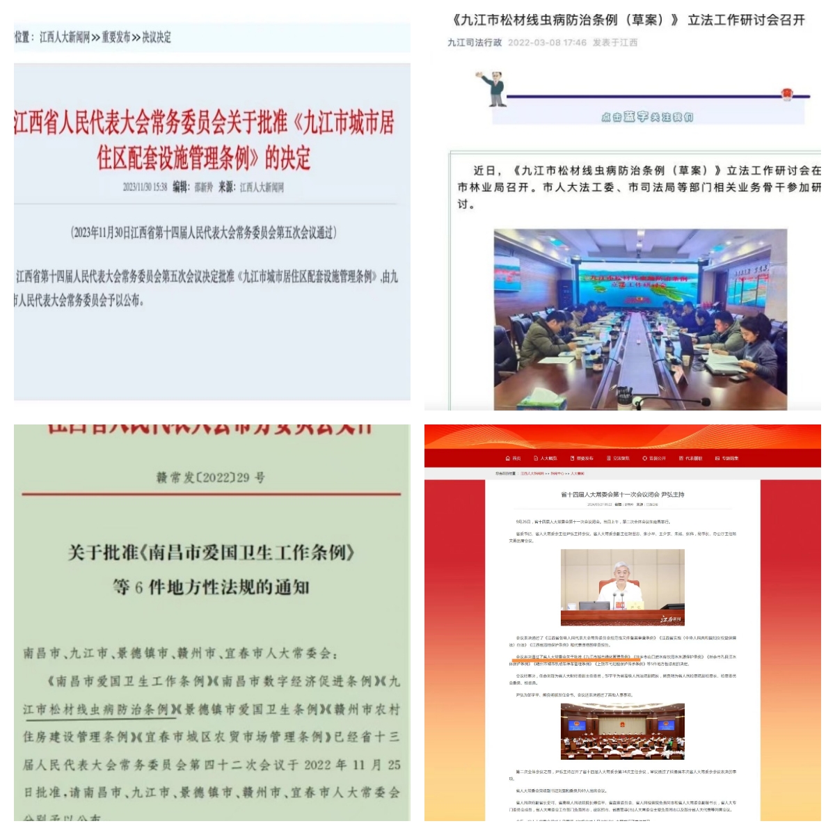 beat365官方网站地方立法研究院成立以来,主持完成《九江市松毛线虫防治条例》、《九江市城市居住区配套设施管理条例》、《九江市城市道路通行管理条例》等九江市立法项目8项,还有3项九江市立法项目尚未完结。立法团队老师认真负责、任劳任怨,受到九江市委、市人大主要领导充分肯定。