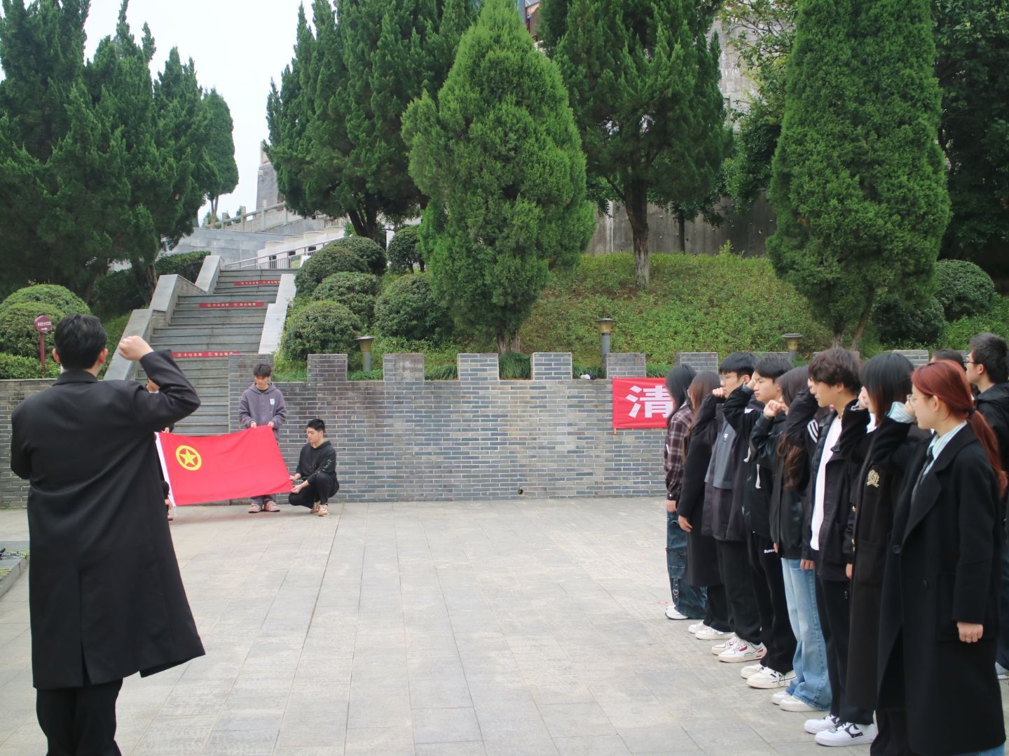 4月4日清晨,管理学院组织40余名学生代表徒步前往九江市革命烈士陵园,开展“慎终追远承遗志,志愿服务显担当”祭扫英烈活动。在庄严肃穆的烈士陵园,同学们向革命烈士敬献花篮、集体默哀、重温入团誓词,随后分组擦拭烈士墓碑、清扫落叶。此次往返步行,不仅践行低碳理念,更让同学们深刻体会革命先辈的艰辛,大家表示将传承先烈遗志,为社会贡献力量。