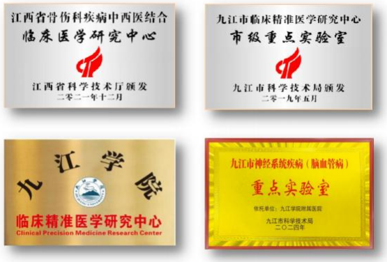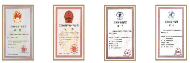 2019 年以来, 医院共有参编 5 个行业指南和专家共识;共发表 论文 1146 余篇,其中 SCI 105 篇,中国科学院一区 6 篇,最高影响因 子达到 13.437;获江西省科技进步奖 2 项,江西省医学科技奖 1项;国家自然科学基金立项 12 项,科技部国家级课题 1 项;省 自然科学基金立项 11 项;获专利授权 103 项,其中发明专利 3 项。 国家级继续医学教育项目 12 项。科学研究方向主要有脑出 血、糖尿病心肌病、糖尿病肾病、再生障碍性贫血、非小细胞肺 癌及肺转移癌等领域的基础与临床机制研究。