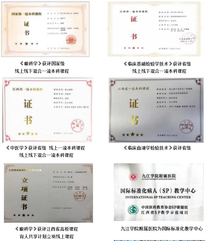 学院设有临床医学和医学检验技术2个本科专业、2个临床技能中心、一个教学中心。其中,医学检验技术为国家一流本科 专业建设点,2022年,在江西省第二轮本科专业评价中大类排位在前30%和专业排位第2名,并获四星专业。临床医学专业为江西省一流本科专业建设点,2021 年江西省专业综合评价排名第三。 学院有江西省高水平本科教学团队2个, 国家级课程1门 (眼科学) 、江西省一流课程4门,江西省课程思政示范课程1门。