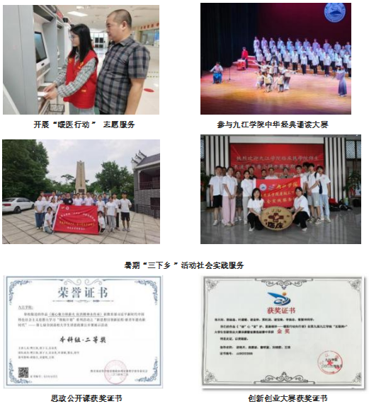 通过各项活动的开展,临床医学院培养出大批政治素养过硬、 社会实践能力突出、专业学识扎实的复合型人才。学院以抗洪为 主题拍摄视频荣获国家级二等奖,红色走读作品荣获江西省一等奖,暑期三下乡社会实践服务队获市 优秀服务队的称号,调研报告荣获省级优秀调研报告,“互联网 +”创新创业大赛我院有效申报率 73.2%,连续四年荣获优秀组 织奖,实现了思想引领、实践创新与学业发展的三维共振。