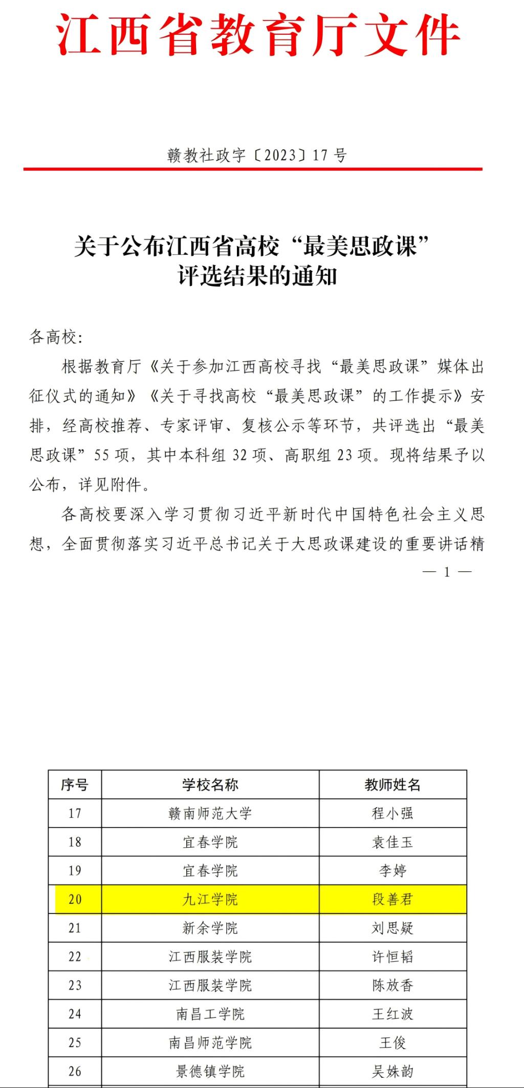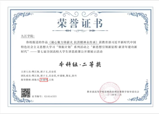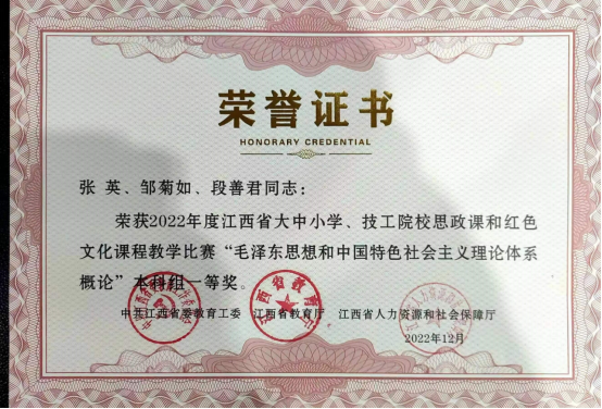 打造教学队伍,通过以赛促教,提升思政课教学水平。近五年来,获全省思政课教学比赛特等奖(一等奖)5项、二等奖7项、三等奖3项;获批省级一流课程1门;省级教改重点课题3项,省级教改一般课题6项,省级基础教育研究课题5项;获评江西省教育厅“最美思政课”1项,省级“师生同台”示范课1项。