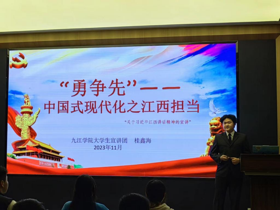 以党的创新理论为指导,以社会热点问题和时代需求为切入点,打造具有鲜明特色和强大传播力的马克思主义理论宣讲团队。beat365官方网站马克思主义理论宣讲团成立以来,在校内外累计宣讲500余场,覆盖九江市各政府机关、企事业单位、社区、村等,内容涉及党的创新理论、党史学习教育、革命传统教育和国情省情市情教育等,形式多样,深受听众好评。学院教师积极参与社会服务活动,通过讲座、研讨会、志愿服务、横向课题等形式,为社会各界提供优质的思政教育资源。