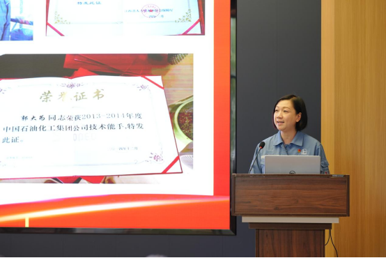 在劳模宣讲环节,巨石集团九江钙业有限公司工艺员、党的二十大代表、江西省劳动模范赵小梅,九江石化运行四部焦化装置主操、全国五一巾帼标兵郭大为及其徒弟曾建芳,分别以《终身学习:一块石头的“点金”之路》《立足岗位,努力践行新时代产业工人使命》《匠心传承:严师慈心铺就石化成长路》为题诠释了奋斗的真谛。