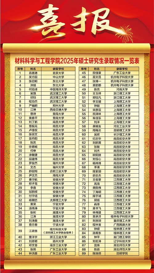 在这场备考征程中,材料科学与工程学院涌现出一批励志榜样:吕善港以“竞赛-考研”双轨模式圆梦北大;吴方园用自制“知识关联图谱”和超强自律叩开中山大学校门;李鑫则通过科学规划实现逆袭……“他们用行动诠释了‘敢为人先、追求卓越’的学院精神。”学院党委副书记熊焘表示。