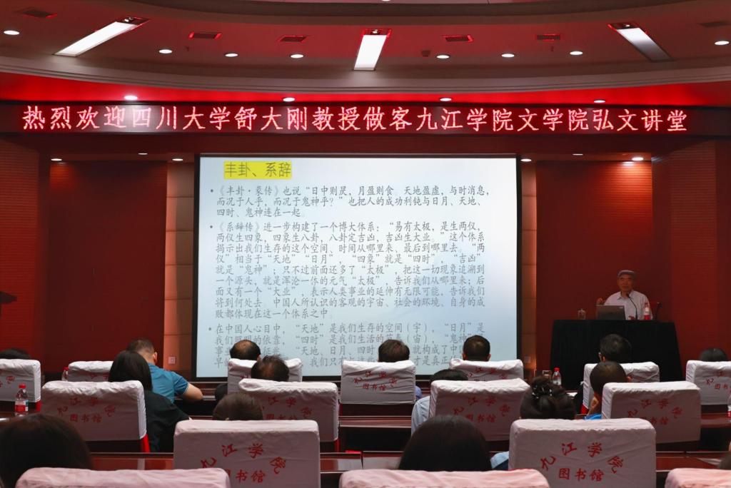在讲座中,舒大刚深情讲述了苏东坡与庐山的不解之缘,指出这位“千年英杰”不仅是杰出的文学家、思想家,更以其深厚的家国情怀和远大理想,成为后世楷模。他从多个维度深入剖析了苏东坡的宇宙观、天下观、社会观和道德观。他说,苏轼在宇宙观上继承了夏禹以来的传统,主张“敬鬼敬神而远之”,强调人本主义;在天下观上,他心怀天下,心忧百姓,立志于实现社会的和谐与进步,倡导“为公”之道;在社会观与道德观上,苏轼则主张“民本”与“情本”,认为民众是国家的根本,情感是人性的基石,需要通过教化来合理节制。