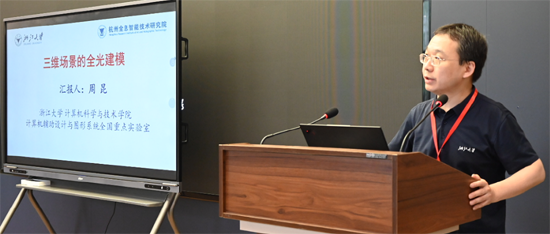 在学术报告环节,周昆教授作了“三维场景的全光建模”的特邀报告,全面回顾了全光学建模的进展,分析前沿创新,并提供对该领域未来发展方向的见解。