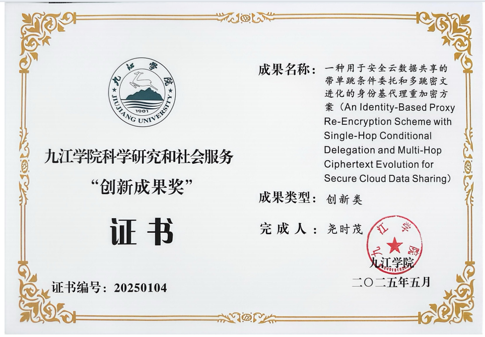 成果发表在信息安全领域顶级期刊、中国计算机学会(CCF)推荐的A类期刊、中国科学院、JCR分区一区期刊《IEEE Transactions on Information Forensics and Security》(IEEE信息取证和安全汇刊)上,得到中国科学院、中国计算机学会和中国密码学会等权威机构认可。