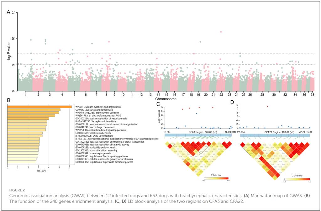 首次使用case-control的方法对收集的样本中12只患有第三眼睑脱出的家犬进行全基因组关联分析(Genome-wide association study ,GWAS)。