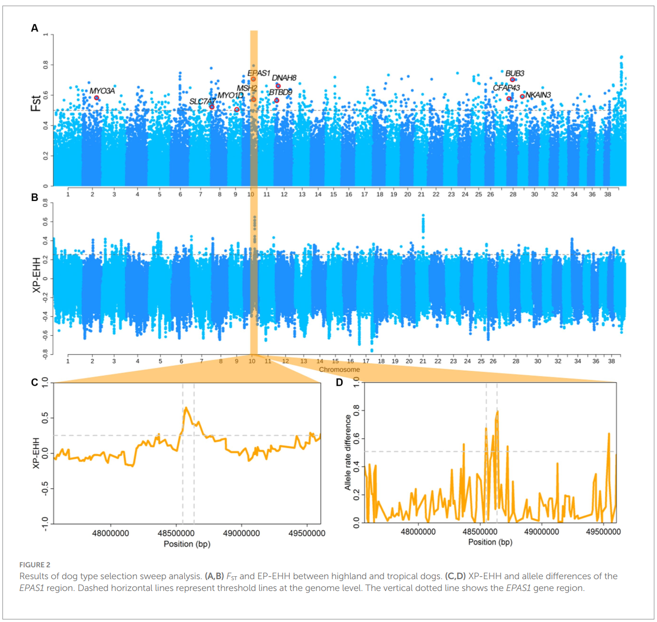 本研究采用了基因芯片分型数据,对不同地理环境中代表性的10个中国本土犬种进行了选择信号扫描与全基因组关联分析,研究结果为蒙古细犬、西藏林芝犬、广西猎犬等本土犬种的警用开发提供科学支撑,人工嗅觉也在禁毒工作提供技术支持。