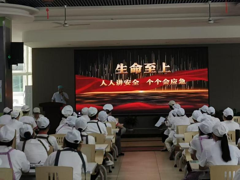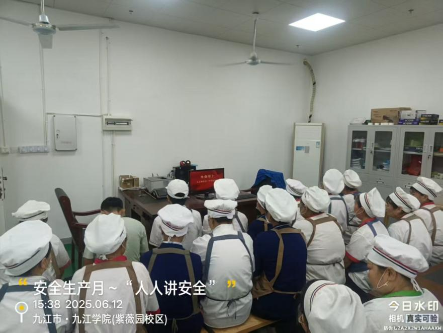 部署会后,后勤管理处立即组织各部门员工开展“安全生产月”活动专题培训及教育警示视频观看活动。活动中,后勤职工集中观看了安全生产教育片,通过真实案例剖析,深入了解食品安全、消防安全、燃气安全等多方面隐患及应对措施。随后,后勤管理处专业人员结合食堂工作场景,详细讲解了食品安全操作规范、燃气设备正确使用与维护、电气安全注意事项等关键知识,确保员工熟练掌握安全技能。