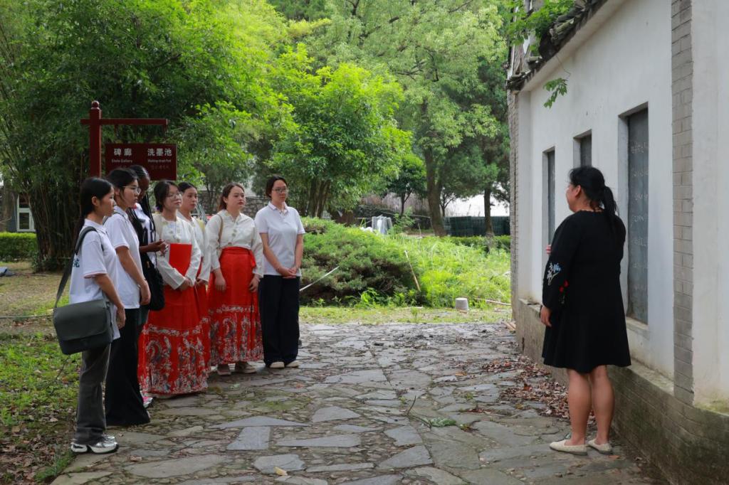 沉浸式导览环节让文化体验更加立体。在讲解员普通话规范讲解的引导下,大家深度探访陶渊明纪念馆。通过祭拜陶渊明墓和参观“陶渊明生平事迹展”,大家深刻感受其“不为五斗米折腰”的清风傲骨、寄情田园的审美境界、心系民生的朴素情怀。在馆藏诗碑处,观众亲手体验拓印或临摹,在笔墨方寸间触摸文字的历史厚度,感受汉字书法之美,深化了对中华文明标志性符号的敬畏与热爱。