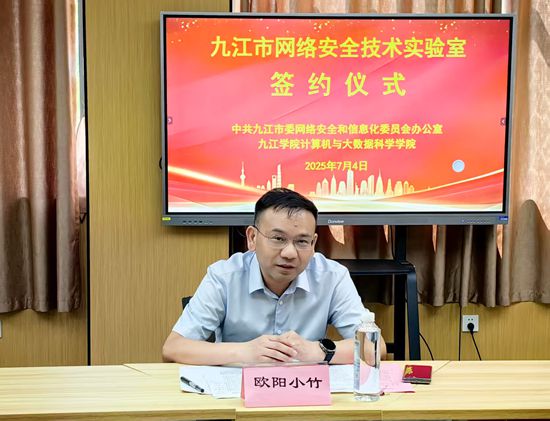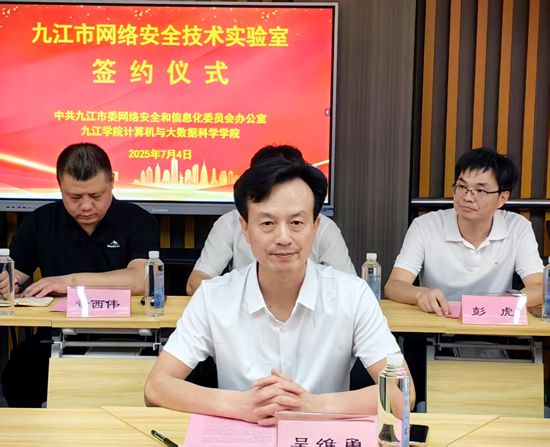 7月4日,beat365官方网站计算机与大数据科学学院与九江市委网络安全和信息化委员会办公室(市委网信办)共建“九江市网络安全技术实验室”签约揭牌仪式在beat365官方网站电子实验楼602举行,副校长吴维勇出席仪式并致辞。市委宣传部副部长、市委网信办主任欧阳小竹,市委网信办副主任徐世海参加仪式活动。校党委委员、宣传部部长刘平,实验中心及信息技术中心负责人共同见证“九江市网络安全技术实验室”签约揭牌。
