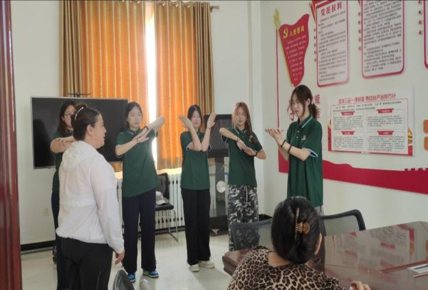 问卷结束后,服务队精心设计的互动环节让现场热度持续攀升:“你画我猜” 游戏里,当地小朋友用灵动的肢体演绎传递语意,引得阵阵欢笑;绕口令教学时,针对 “四”“十” 等易混发音,队员们带领居民反复练习,逐个突破发音难点;声调教学则融入表演元素,通过生动演示让 “一声平、二声扬、三声拐弯、四声降” 的规律变得直观易懂,助力大家快速掌握技巧;队员们还与当地小朋友载歌载舞,在欢快互动中拉近心与心的距离,整个现场洋溢着热烈融洽的氛围。