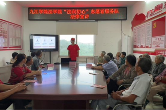 6月27日,服务队走进共青城市金湖乡和平村法治广场,服务队师生摆起了咨询桌,一同为村民提供一对一的法律咨询服务,耐心解答村民们的疑问,筑牢乡村网络法治防线。队员们围绕村民基本情况、网络安全认知等方面提前设计问卷,在活动现场以问卷调查为载体开展网络安全普法宣传,结合实际案例讲述防范要点,针对村民反映的问题借助情景模拟讲解防范技巧。