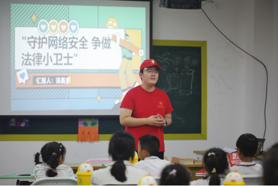 6月24日,服务队在茶山街道与金湖乡凤凰村开展法律宣讲与入户宣传活动。在茶山街道,服务队与温馨社区党群服务中心联动,为中小学生开展了一场生动有趣的普法活动。队员汤晨宇与黄莉以互动PPT为载体,结合真实案例深入浅出地讲解网络法律知识,还设置了“法律知识小竞赛”环节,点燃了学生们学习法律的热情,现场气氛十分活跃。活动后,队员们深入村民家中,发放网络安全宣传手册,用接地气的语言讲解网络安全要点,耐心回应村民们的日常法律困惑,让法治观念走进千家万户。
