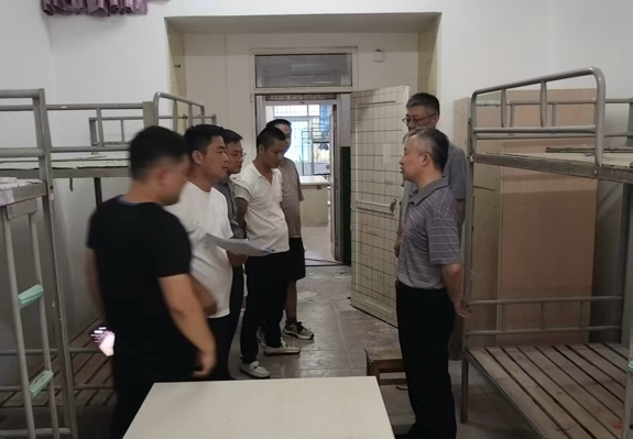 检查组一行先后前往学生宿舍、学生食堂及四号服务楼等重点区域,实地查看维修工程进展。在学生宿舍粉刷维修项目现场,鲁卫东仔细查看墙面处理、涂料环保性等细节,询问施工进度与学生住宿需求的衔接安排,强调宿舍是学生在校的“家”,维修工作要兼顾质量与安全,确保开学后学生能住进舒适整洁的环境。