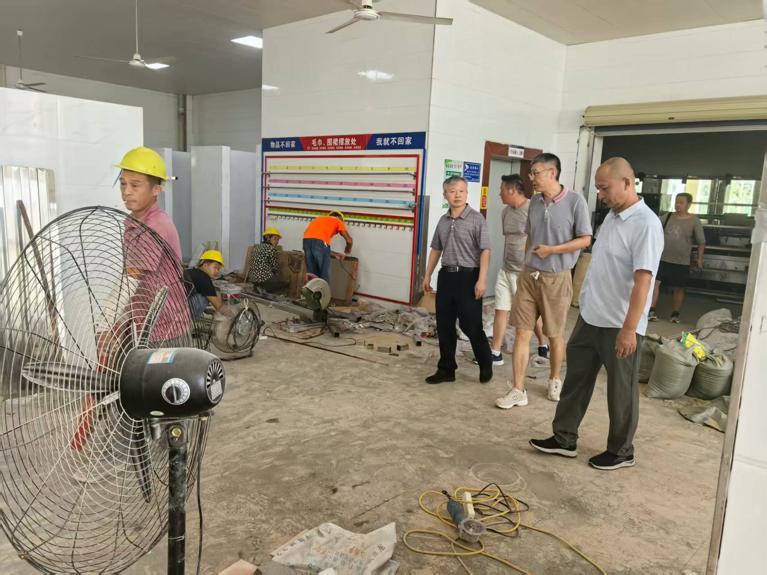 随后,检查组来到学生食堂维修改造项目现场。针对食堂后厨改造、地面防滑处理等改造内容,鲁卫东与施工负责人深入交流,要求严格把控食材储存区域的改造标准,强化施工过程中的卫生管理,保障食品安全底线,让师生吃得放心、吃得安心。