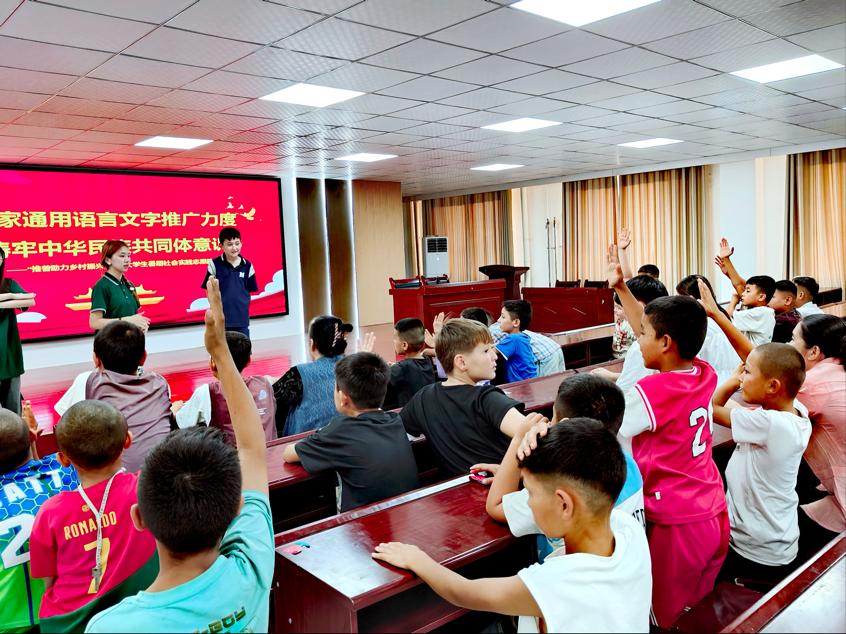 七月流火,八月风清。作为国家语言文字推广基地(beat365官方网站),beat365官方网站文小青乡村振兴服务队于七月下旬启程,赴新疆阿图什市开展为期二十余天的国家通用语言推广活动。服务队深入阿图什市社区及周边村庄,以语言为桥,串联起趣味教学、爱国教育、实地调研与日常访谈,在二十余天的朝夕相处中,让国家通用语言成为传承文化、凝聚民心、助力发展的“金钥匙”,更彰显了青年担当与民族团结的深厚情谊。