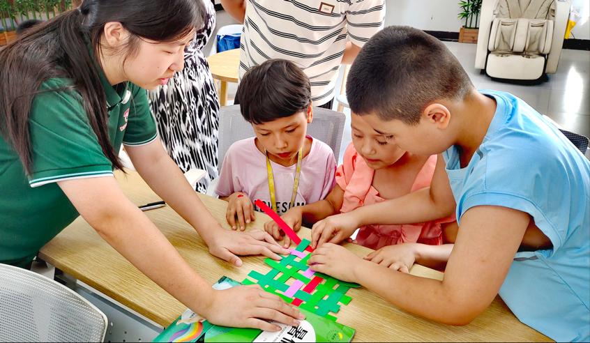 在阿图什市某社区的红领巾课堂上,队员们正带着孩子们做“竹编诗词”游戏。纤细的彩纸在指尖翻飞,渐渐成形的不仅是“竹编”,更是中华优秀传统文化与国家通用语言的奇妙融合——孩子们一边跟着念出“大漠孤烟直”的诗句,一边触摸“竹编”的纹理,在动手与诵读中加深对文字与文化的理解。