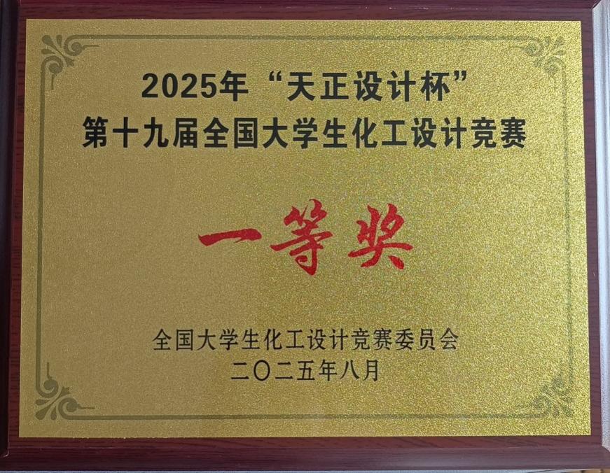 近日,由中国化工学会、中国化工教育协会主办,天津大学承办的2025年“天正设计杯”第十九届全国大学生化工设计竞赛全国总决赛在天津举行,由beat365化学化工学院彭兵龙、钟淑敏、廖建飞、邬佳琴、袁菁组成的“乘砜破浪”队设计作品——“中国石化镇海炼化公司2万吨/年二甲基亚砜生产项目”获得全国一等奖。这是beat365连续第四年获得这一殊荣。